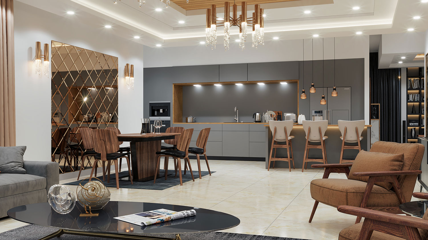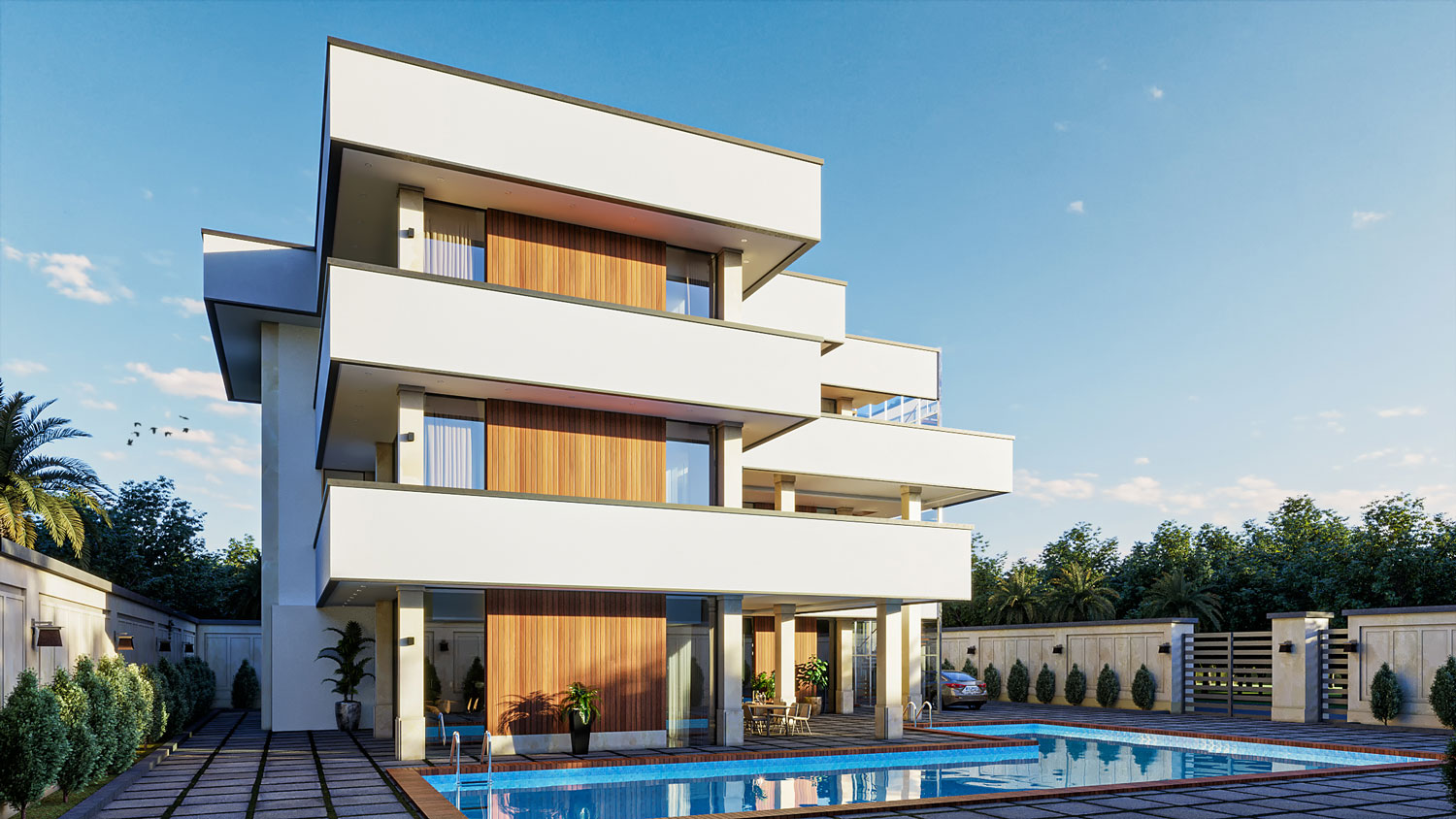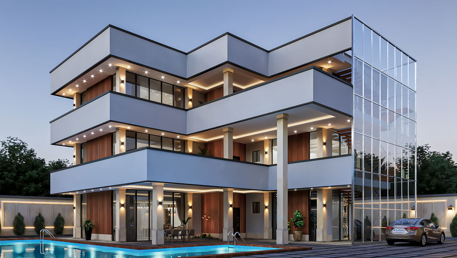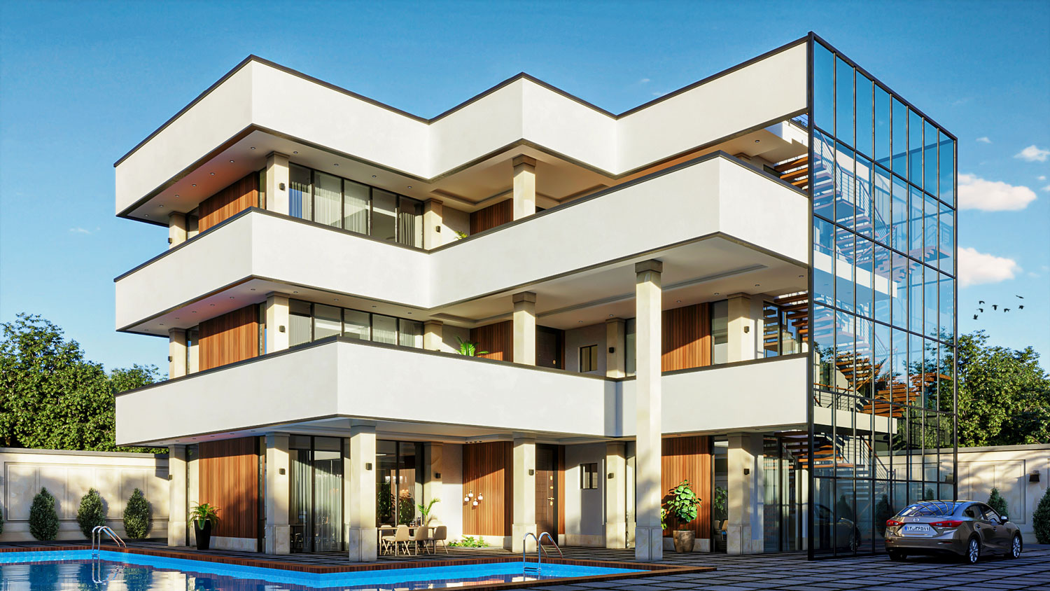 فرم L ساختمان حالت دعوت کنندگی به فضای جمعی و مشترک کنار استخر در طبقه همکف دارد و باتوجه به اینکه در طراحی پلان باعث جداسازی زیبایی فضای عمومی و خصوصی خانه شده است…