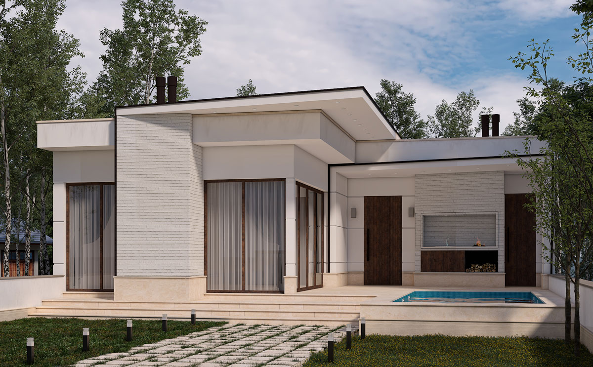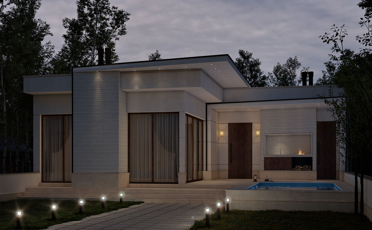 به دلیل آفتاب های تند و سوزان منطقه فرم معماری ویلا با پوسته بیرون زده تعریف شده است.