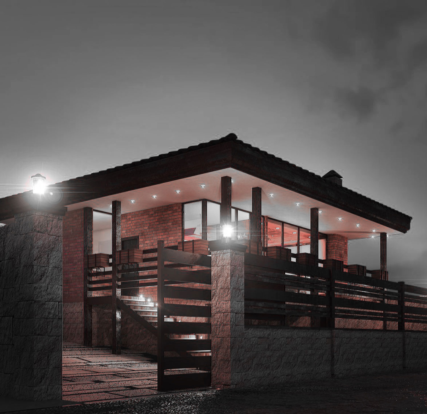 کنار این دید زیبا آتش را جانمایی کردیم تا ساکنین در روزهای بارانی و فضای مه آلود دائمی منطقه لذت صدای سوختن چوب و گرمای آن را حس کنند.