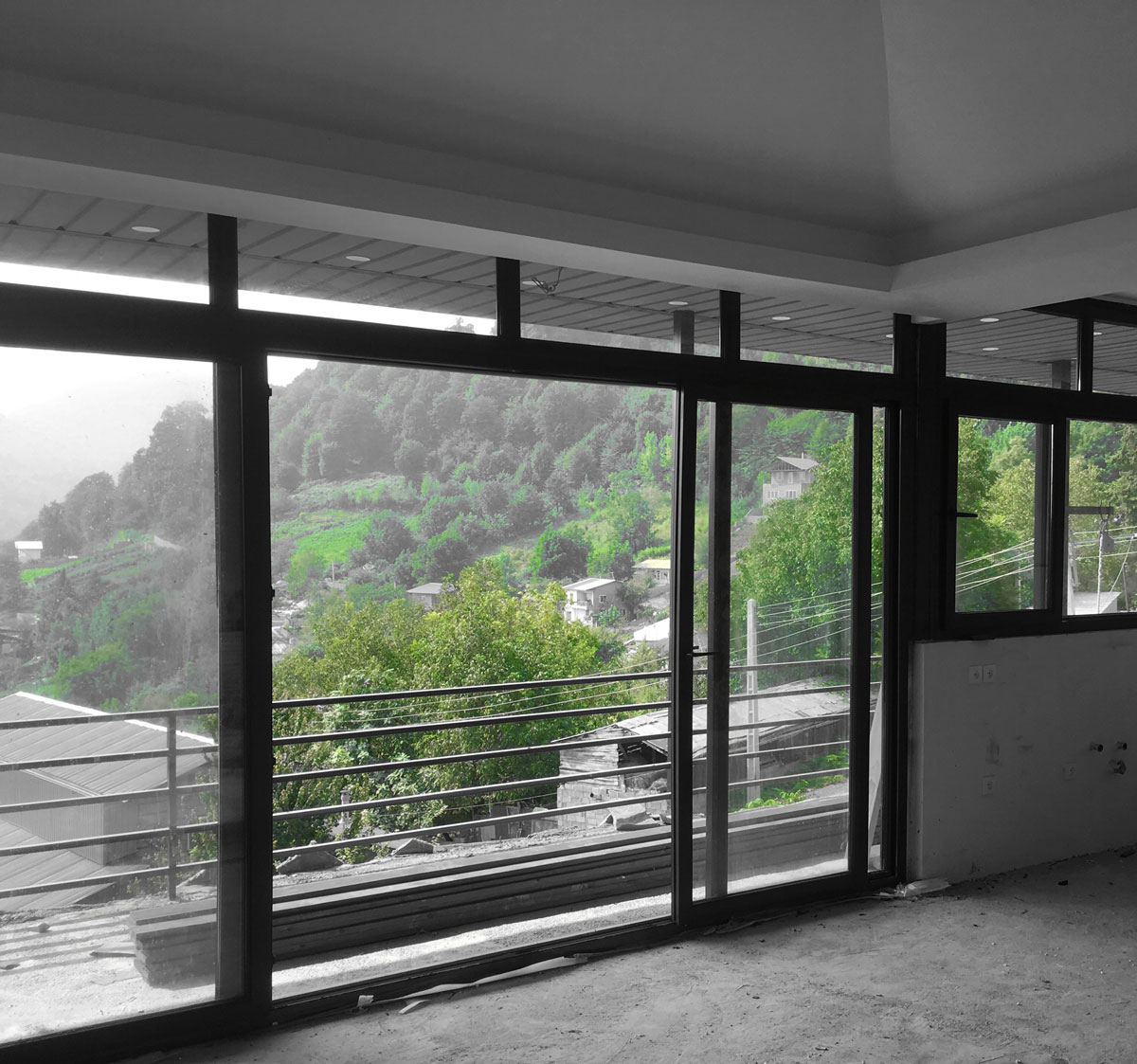 با طراحی دیوارجنوبی از جنس شیشه منظرهای ایجاد کردیم رو به دره.