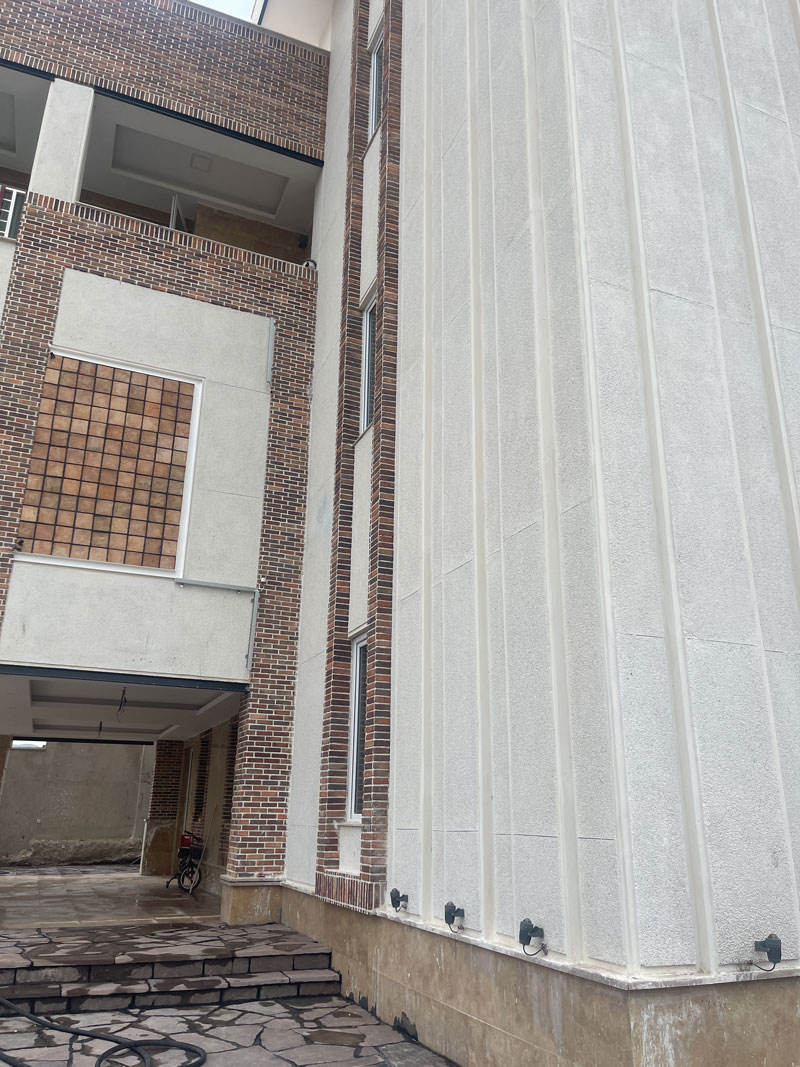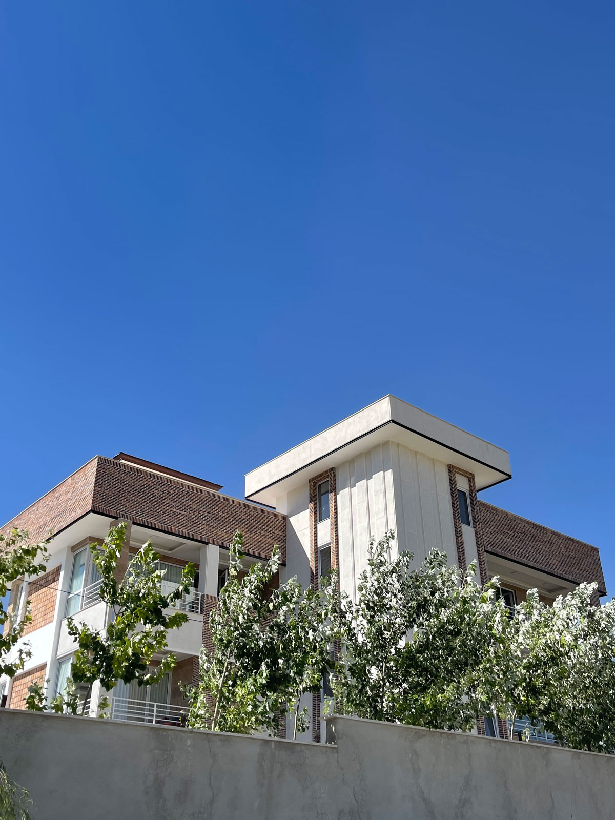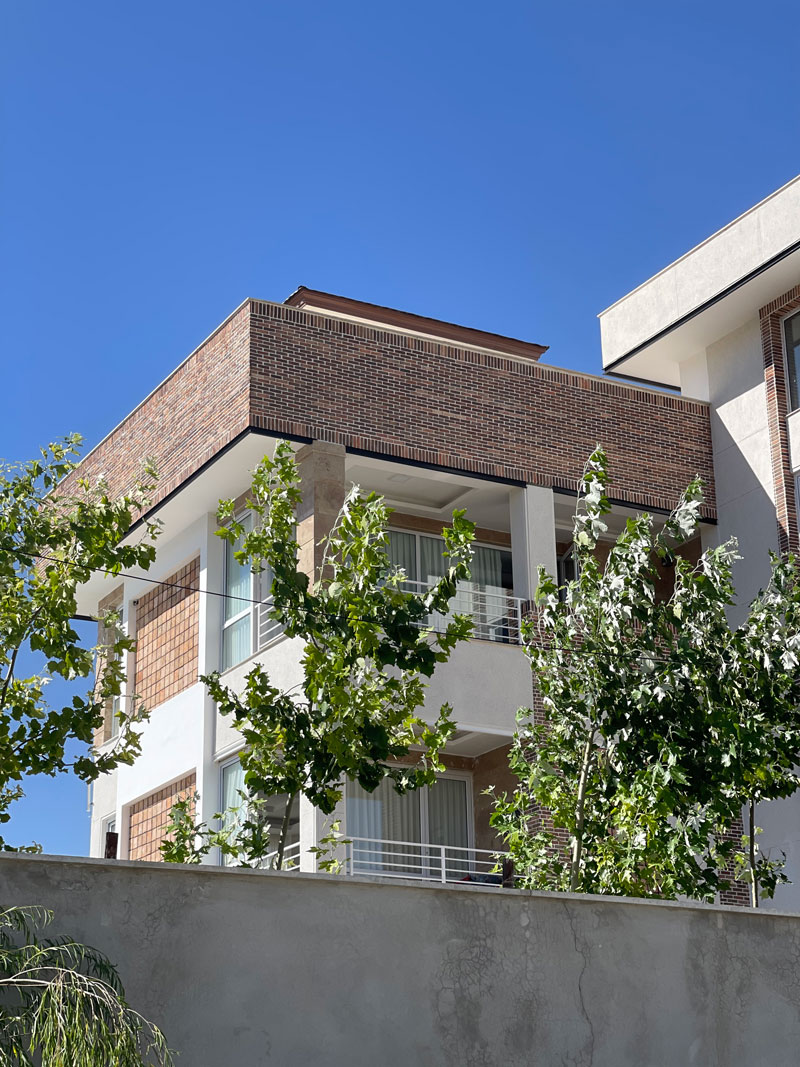 متریال و پوشش آجری نمای آن در کنار سیمان سفید ، حس نوستالژیکر را برای کاربران مجموعه ایجاد می نماید و کاربرد این متریال کاملا هماهنگ با ساختمان های واقع شده در محیط اطراف و همچنین اقلیم منطقه می باشد.