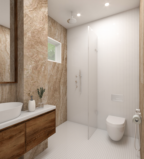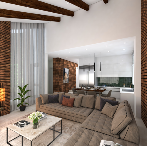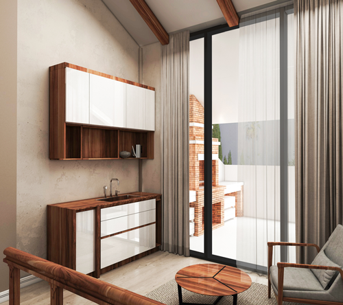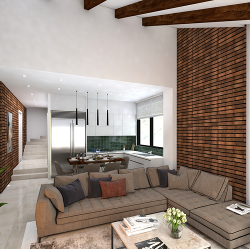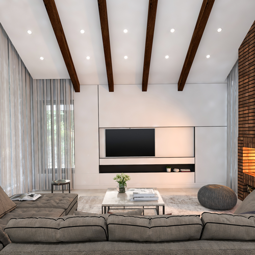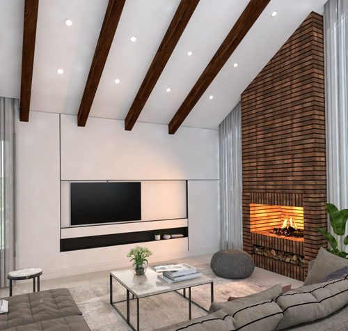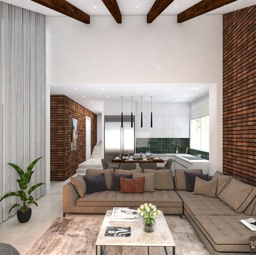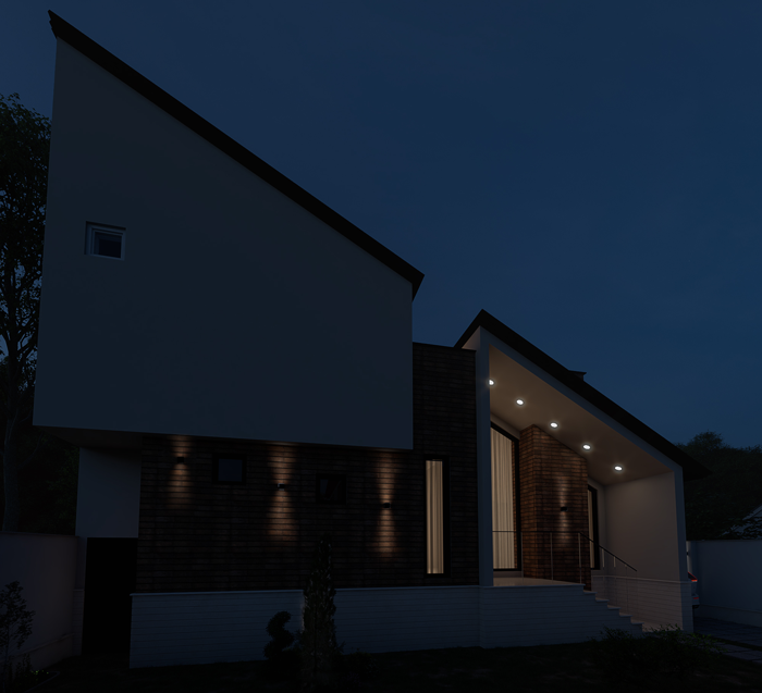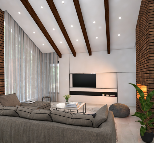 باتوجه به موقعیت مکانی این پروژه در طراحی فرم از سقف شیبدار مدرن استفاده شده و در همین راستا در طراحی داخلی ویلا از الوارهای چوب، که یکی از اصلیترین مصالح خطه شمالی کشور است استفاده کردیم.