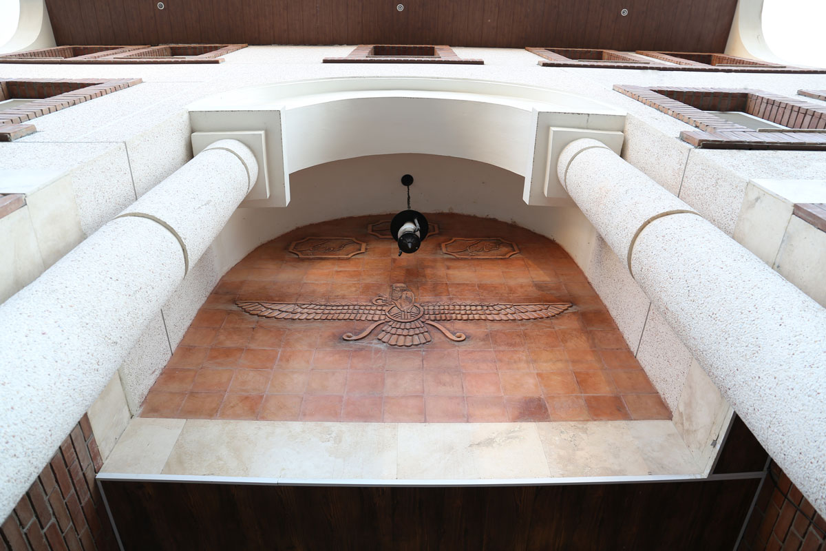 First of all, the regular frames around the windows and especially the definition of the entrance with the Iranian arch based on the massive columns, have created a harmonious structure based on the principles of Iranian architecture, the second time, paying attention to the materials used for covering has been important.