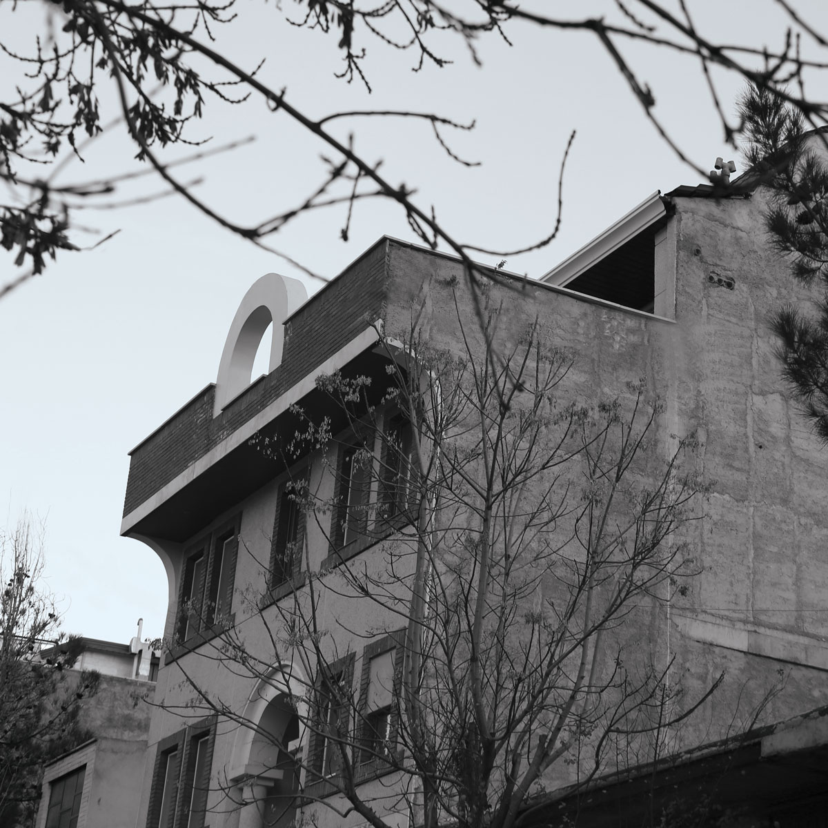 Another important part of this residential facade is the use of an extended arch in the part of the crown, which can be seen in the internal structure of the duplex unit designed on the upper floors, and in other words, this arch is completely structural and besides aesthetic issues.