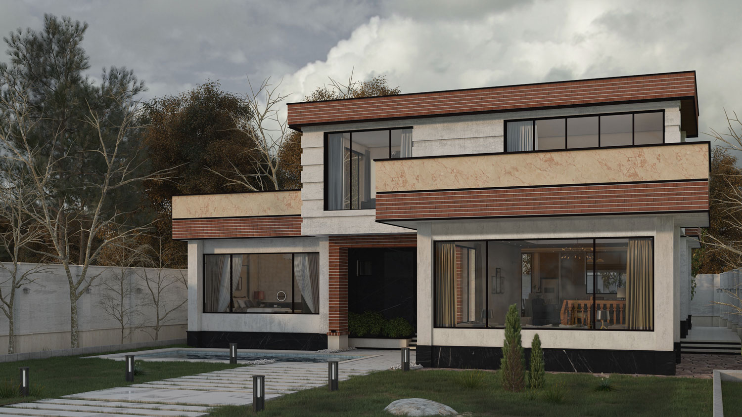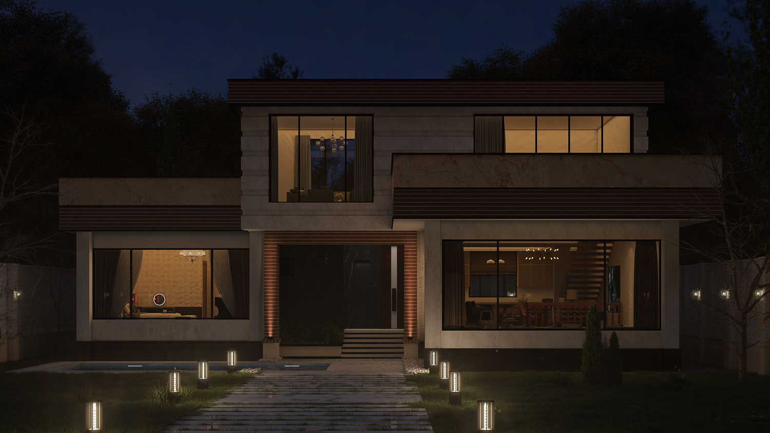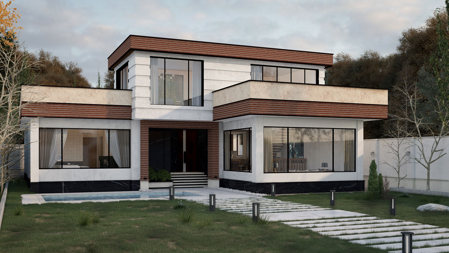 In this villa, public and private spaces are completely separated and only one way is designed from the alcove to the upper floor.
